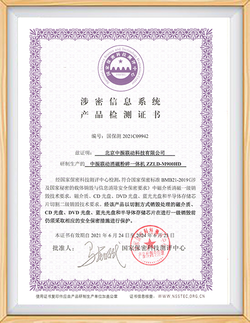 北京中振聯動科技有限公司成立于2011年,是一家專業從事保密銷毀設備的研發、生產、銷售、技術服務等工作的綜合型公司,主要產品銷售覆蓋全國各省市涉密單位。公司總部設在北京市東城區安德里北街22號恒通偉業大廈B座,主要負責全國業務推廣及服務工作;生產基地設在安徽省蕪湖市繁昌經濟技術開發區,主要負責銷毀產品的研發、設計、生產、服務等工作。